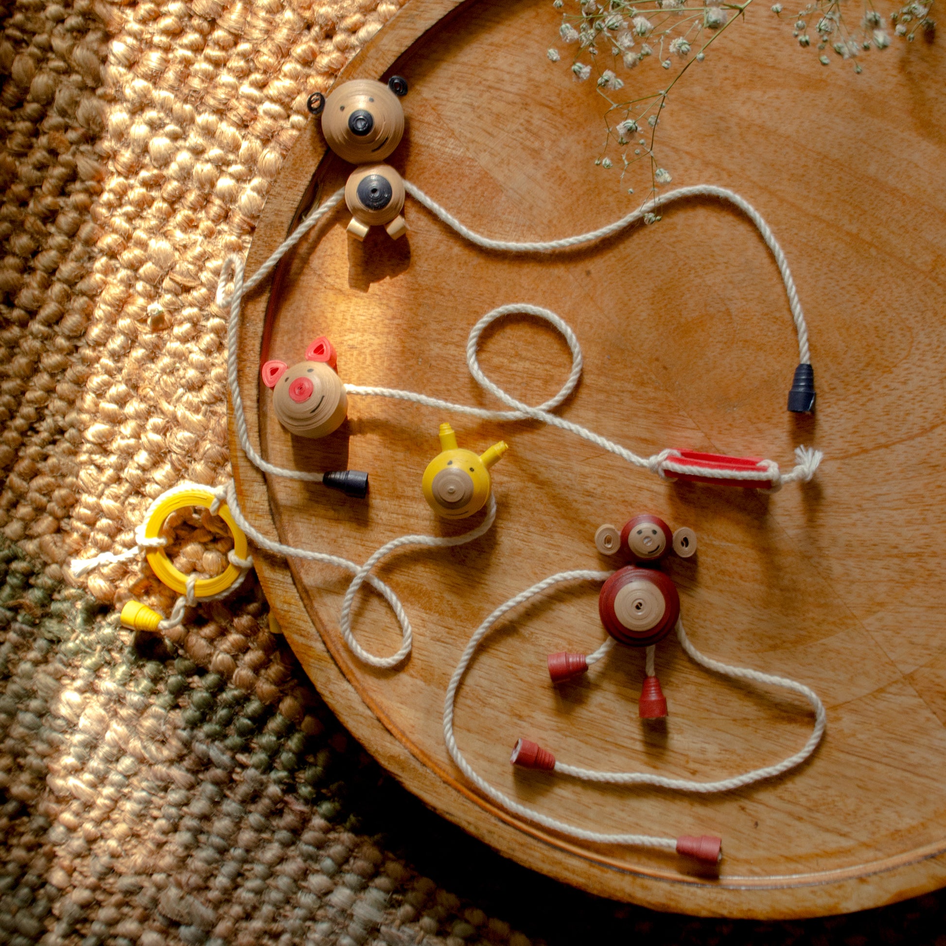 These playful rakhis are created by local women artisans living in an urban village near our studio. They are made with eco-friendly materials - paper and cotton thread. Paper parts are finished with non-toxic varnish to protect it.